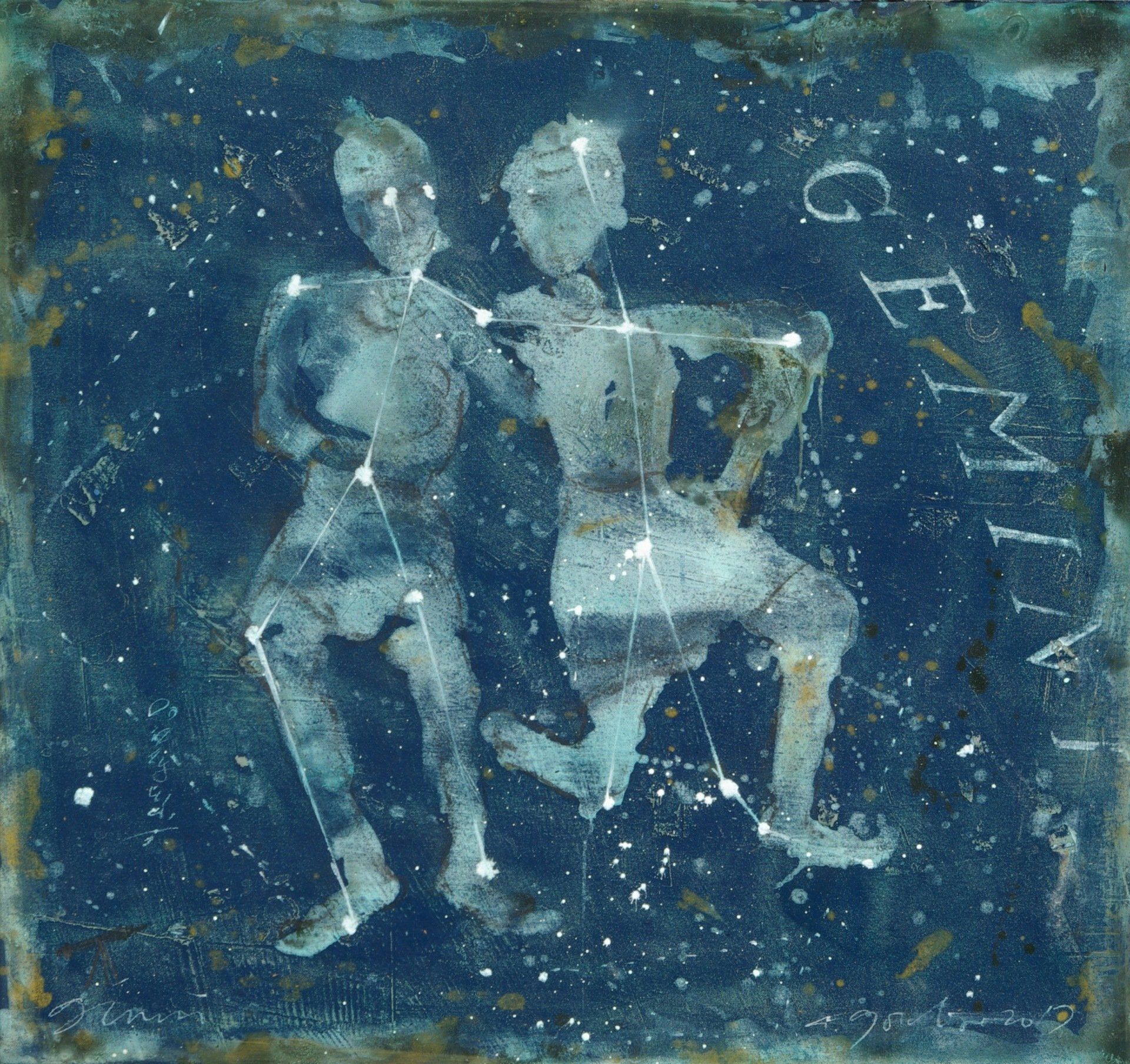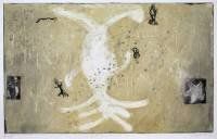 At the beginning, on the bare canvas, the earth, the ash; then the prints, the cracks, the buboes, the traces, the signs; it comes back to life. Then come the colors, in water, their kitchen-chemistry, the dry pigments, in mayonnaise, bound, wet.